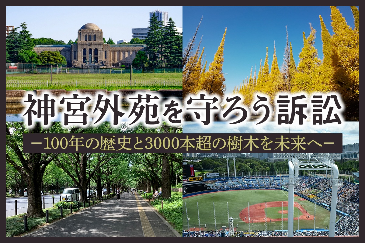 100年にわたって親しまれてきた緑あふれる憩いの場・神宮外苑が、市民を交えた議論も、検討・検証の機会のないまま、行政の恣意的な手続きで再開発されようとしています。神宮外苑の再開発に伴う樹木伐採の許可の取消しを求めて、計画の正当性を司法に問う訴訟です。