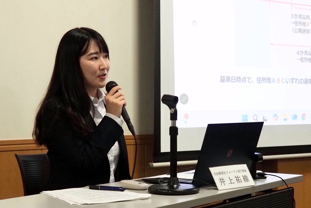 ▲ Reporting on this case at the "78th Legal Trainee Forum" subcommittee "Whose right to vote is it?" on October 12, 2025