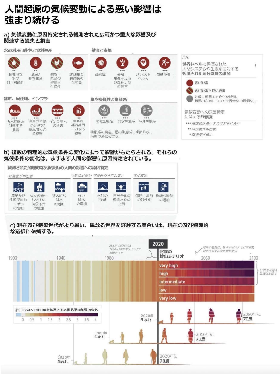 この何十年もの間、日本は望ましい方向へ進むチャンスを自ら手放してきてしまったのです。気候変動は、どのような立場であれ確実に社会生活において悪影響を受ける事象ですし、また、悪影響をもたらす側にもなります。しかも、その影響は、将来の何世代先にもわたって続き、深刻化していってしまいます。